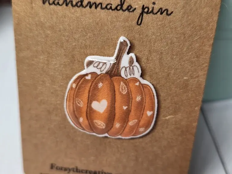 Orange Fall Chalk Pumpkin Handmade Pin
